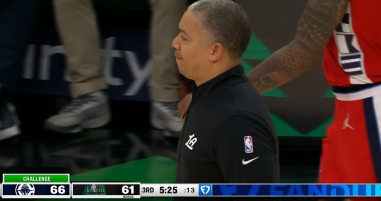 又成功!双方拼抢出界判给森林狼球权 卢挑战成功改吹戈贝尔犯规